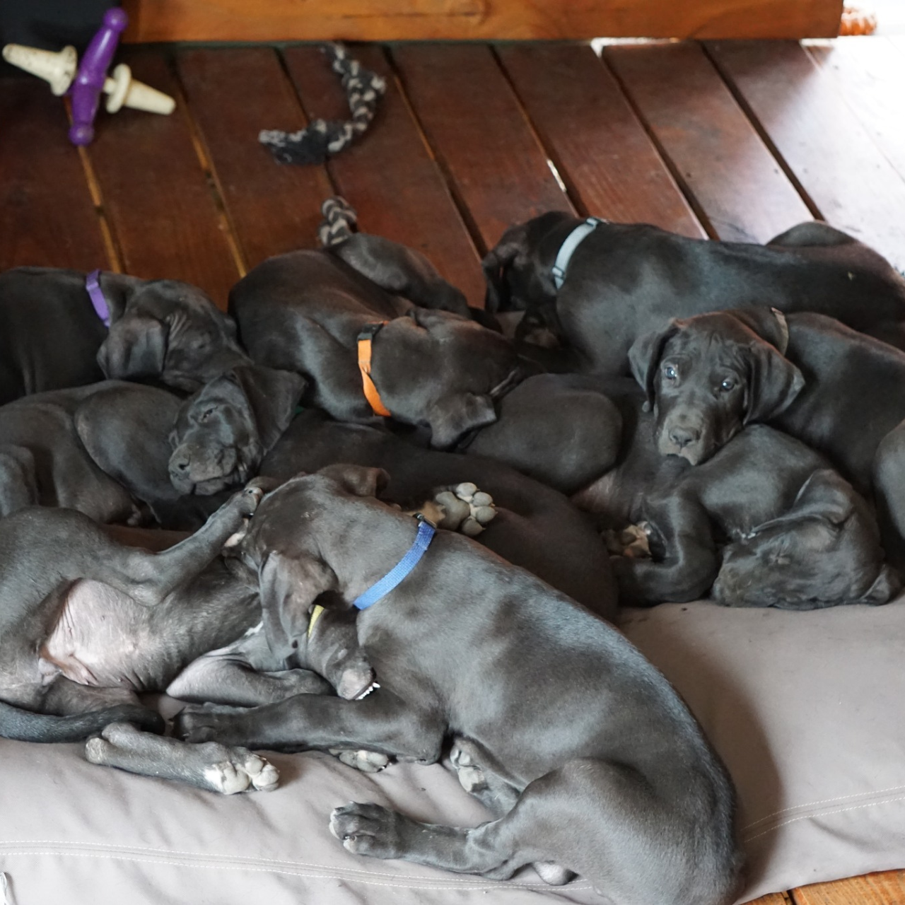 From playful puppy moments to peaceful naps, these snapshots reflect the calm confidence and gentle spirit we nurture in every Dane. Our goal is to raise dogs who are as beautiful in temperament as they are in stature—and it all begins here, in our Colorado home.